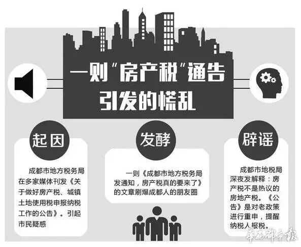 一是11月1日下午,一则《成都市地方税务局发通知,房产税真的要来了》的文章引发很多人的关注,文章引用成都地税局在的一则《关于做好房产税、城镇土地使用税申报纳税工作的公告》,公告指出:房产税在城市、县城、建制镇和工矿区征收,由产权所有人缴纳。征收税率为,按照房产原值一次减除30%后的余值作为计税依据,税率为1.2%。房产出租的,以房产租金收入作为计税依据,税率为12%。很显然,这里的房产税不是我们现在讨论的“房产税”,这是1986年的《房产税暂行条例》里规定的房产税,而且对住宅实行免征。令人感到好笑的是,居然有很多高端人士和媒体也在传这个消息,所成都开始征房产税,这种乌龙,实在太低级。