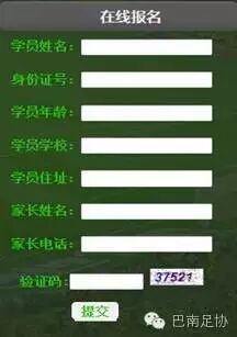 1、网络报名:登录重庆市巴南区足球协会官方网站www.cqbnfa.org,青少年足球培训-在线报名,填写完毕后点击提交即可;