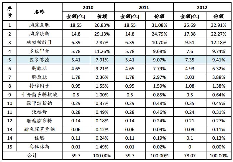 我国免疫制剂终端市场接近千亿元级别(终端价格口径),其中匹多莫德排名第五,增速高于胸腺法新和多抗甲素等品种。