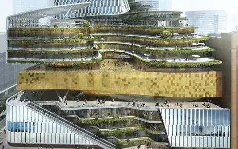 该建筑设计以“书卷缱绻掩山城”为立面主题,融合了梯田、吊脚楼等元素,整个建筑舒展流畅,行云流水间彰显建筑的文化韵味和商业氛围。
