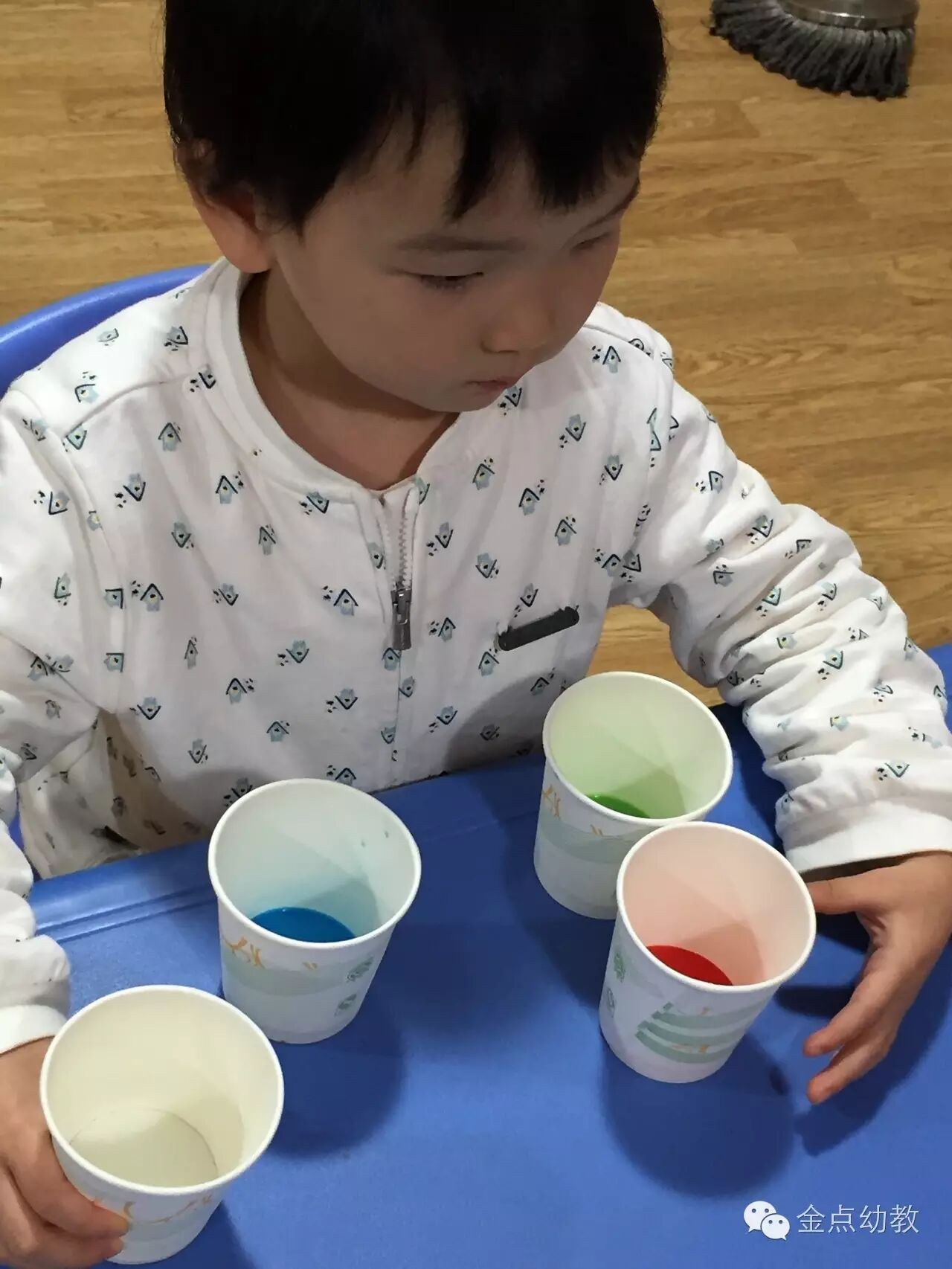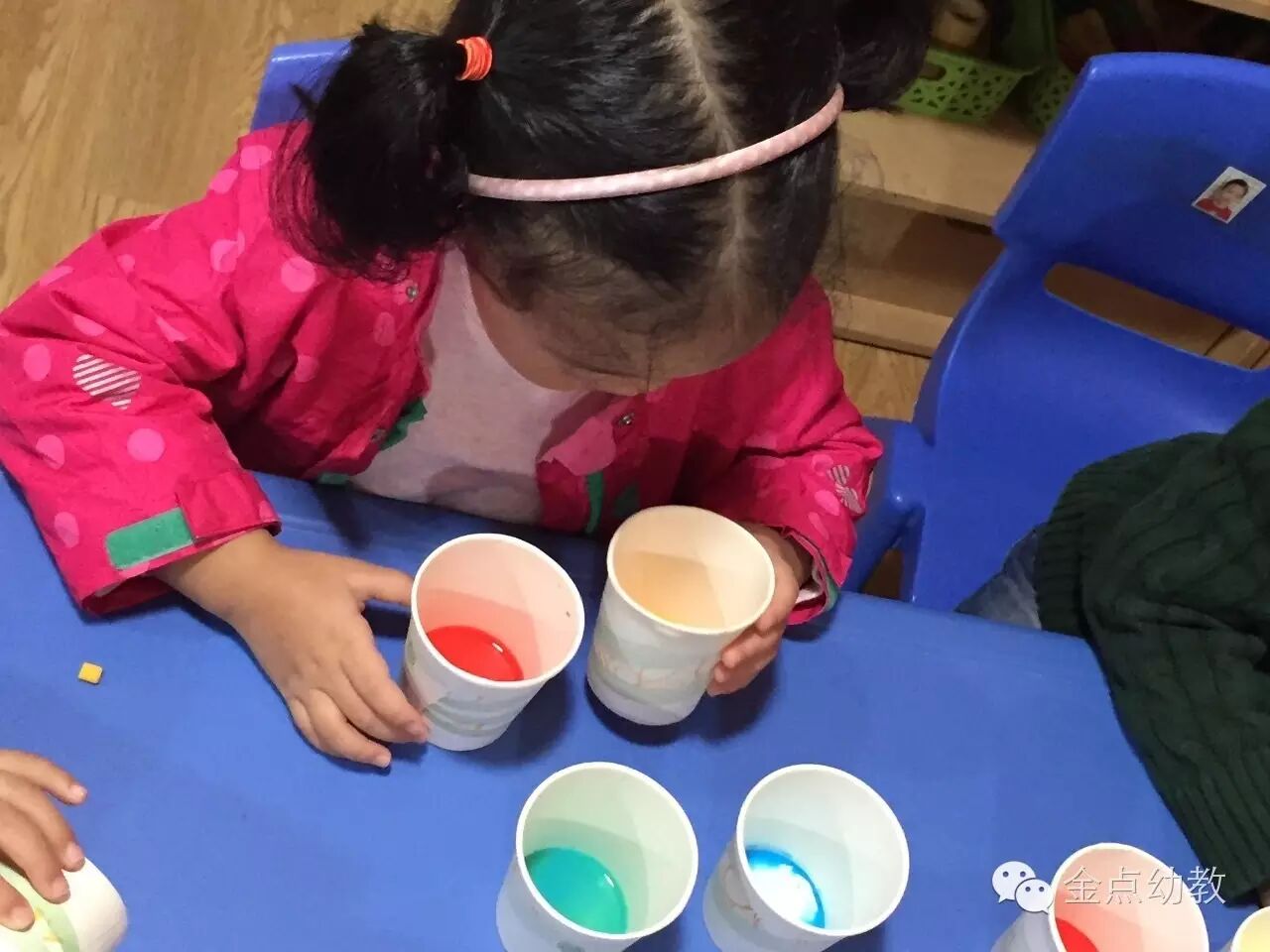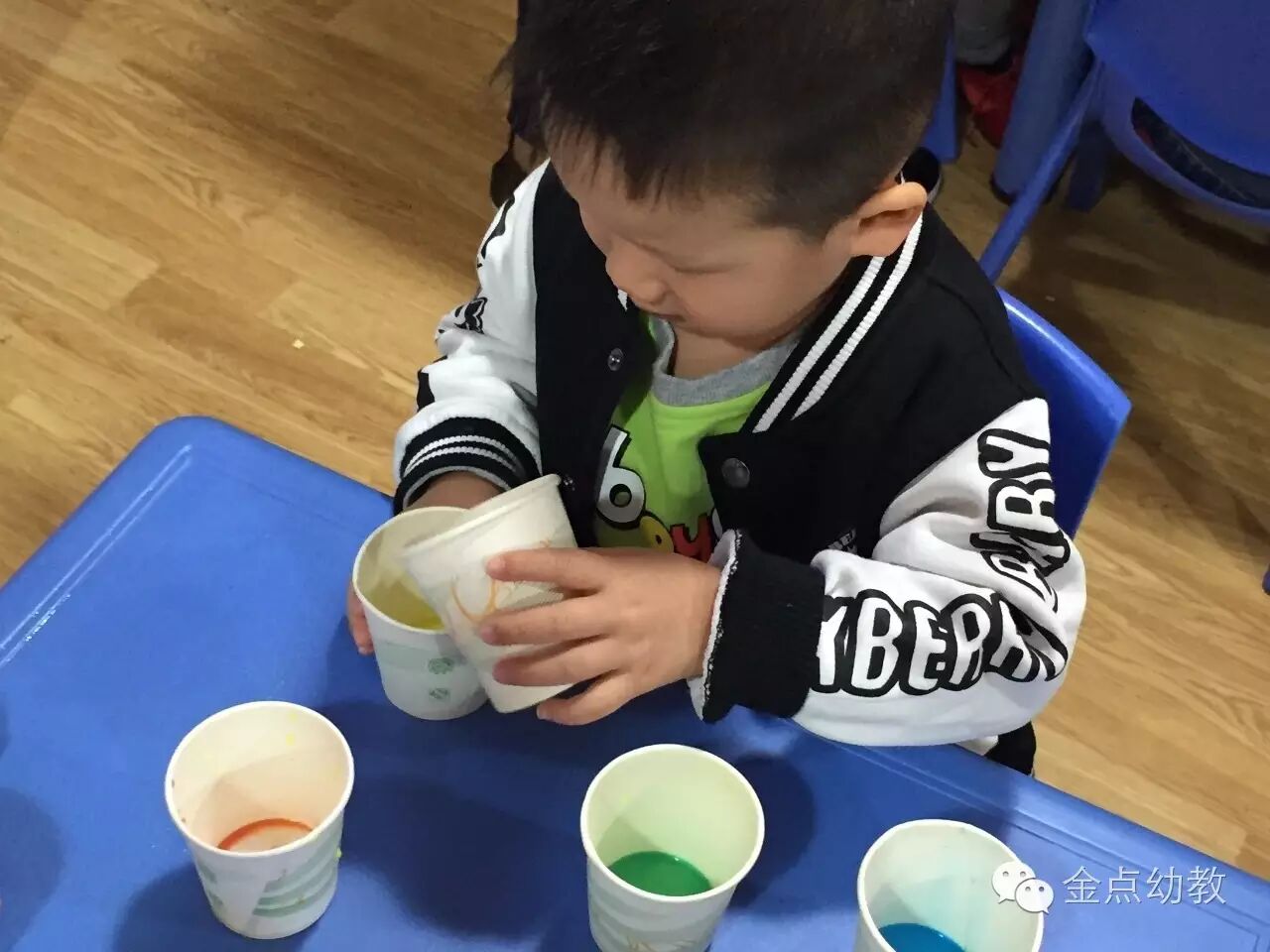 又到了孩子们最感兴趣的玩色游戏时间——颜色变变变。