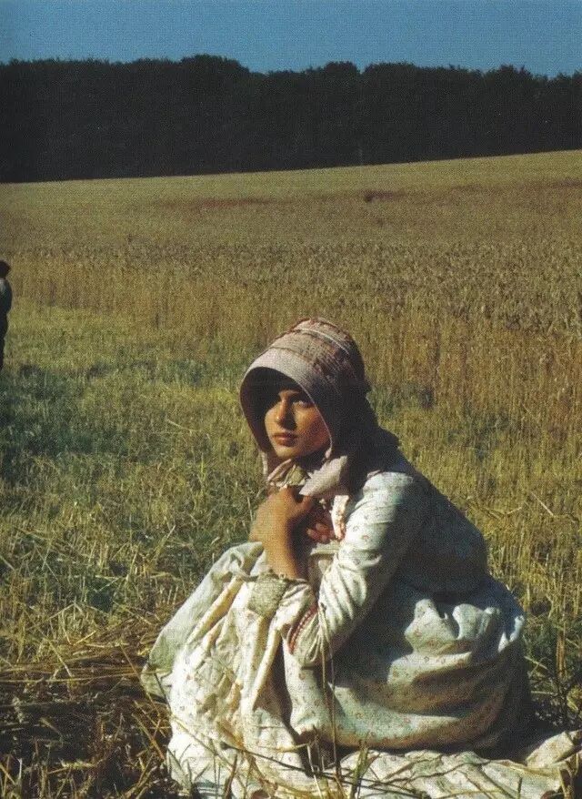 影片的第一个场景就出现在一片远离尘嚣的肥沃原野上,我的眼球立刻被那一片绿草如茵深深地吸引住了。一群穿着白色连衣裙的纯朴少女,手牵着手,踏着欢快的乡村舞节奏,在草坪上翩翩起舞,成为这片原野上最美丽的一道风景线。在她们之中有个姑娘,生的秀丽、端庄,周围没有一个姑娘比得上她。她就是本影片的女主人公——苔丝。