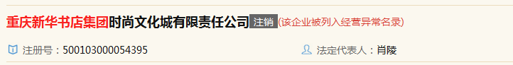 另外,新华书店集团时尚文化城有限责任公司注销,被列入经营异常名录。