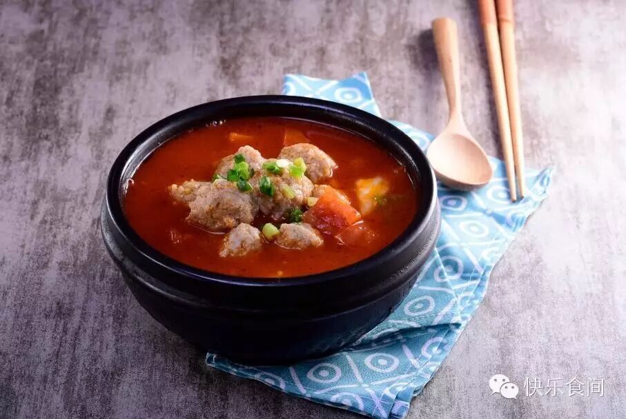 工商大学:番茄丸子,像这道番茄丸子一样,每一口丸子都非常入味,配上爽口的番茄汤。小石锅里装满了工商大学青春的味道。