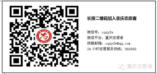 如果你有优秀的稿件,如果你想分享你与志愿服务之间的故事,欢迎投送到重庆志愿者邮箱:cqzyfw@qq.com