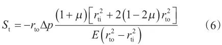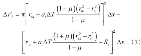 (2) 油管径向压缩。油管柱外表面因环空压力降低将产生径向压缩, 使尾管悬挂器下部环空的体积减小。油管内外压差变化产生的油管径向位移为 [8]