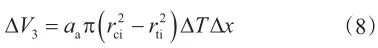 (1) 油管径向收缩。油管柱会因温度降低而发生径向收缩, 使尾管悬挂器下部环空的体积增大。根据温度变化引起的油管柱径向位移计算, 可得温度变化引起的环空体积增加量为 [7]