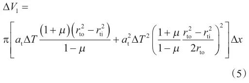 式中, a t 为油管柱的热膨胀系数, ℃-1 ;μ 为油管柱的泊松比;r to 为油管外径, m; r ti 为油管内径, m;Δx 为油管柱微元段长度, m。