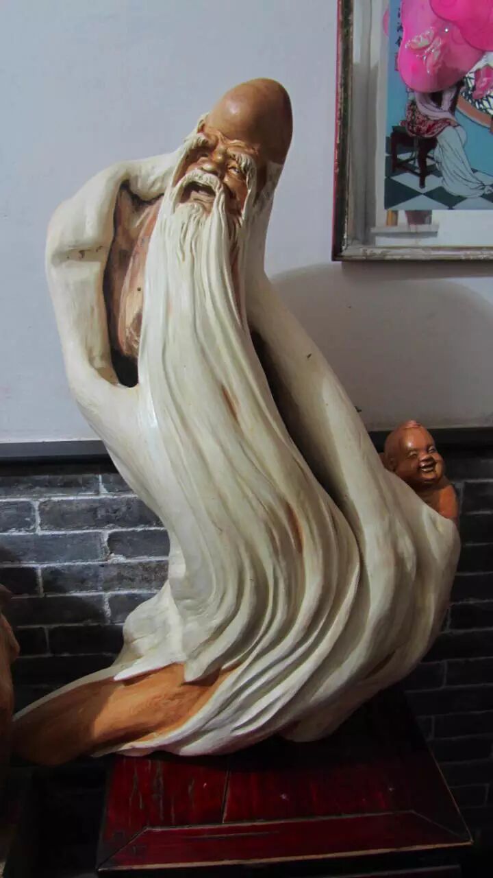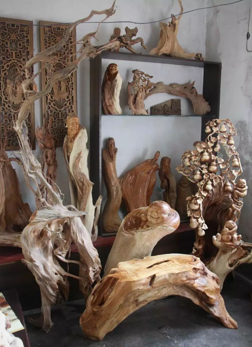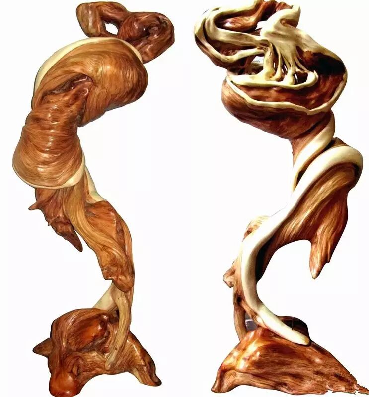 ▼ 华北地区太行山脉岩石缝中枯死的崖柏树根、树干、由于在极端恶劣的环境下生长,吸天地精气,并经历崖风之强力吹刮,使其形成了奇特的飘逸、弯曲、灵动的造型,木质密度高、油性大,并有着醇厚的柏木香味,而成为根雕、根艺的最佳材料。