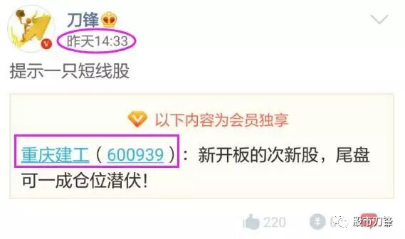 刀锋昨天尾盘在在爱股票APP推荐的重庆建工,涨停后已盈利13个点!长按下方二维码,下载爱股票APP,在高手中订阅刀锋,盘中提示涨停潜力股!