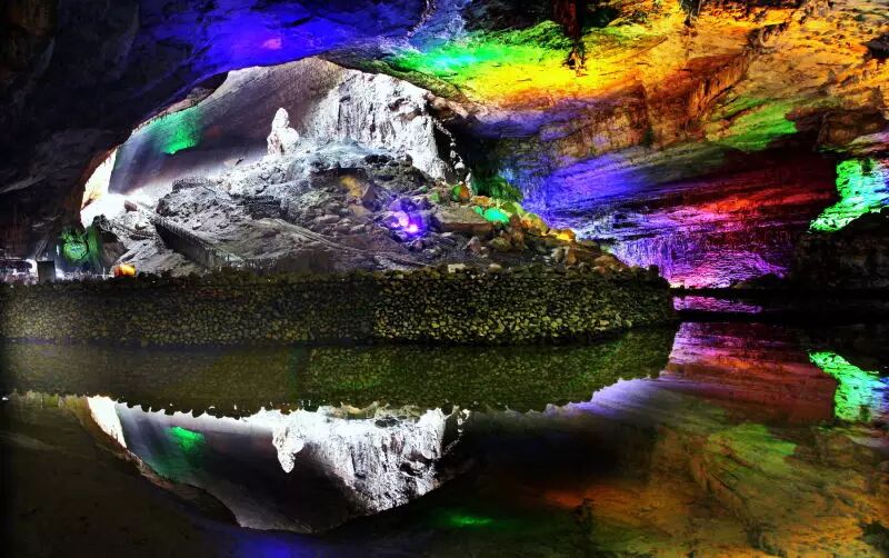 夏凉冬暖的天泉洞里,还有一处盛景,那便是长廊水洞。坐上游船,听船夫唱一首苗族山歌,摇曳在地洞河内,探寻玻璃鱼的踪迹,好不惬意!
