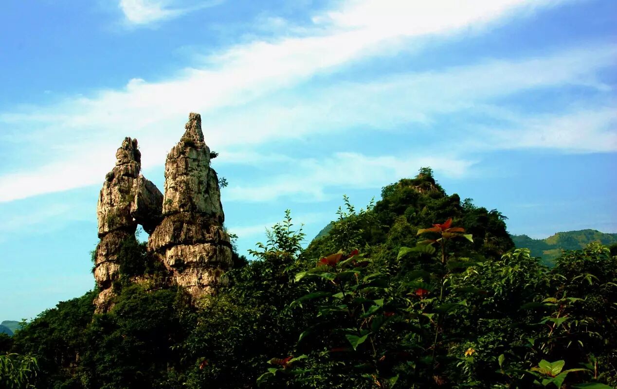 夫妻峰高40余米,如夫妻携手侃侃蜜语,这对笑看千万年人间风云,至今没有分开的石夫妻,其永恒的爱情令人肃然起敬。
