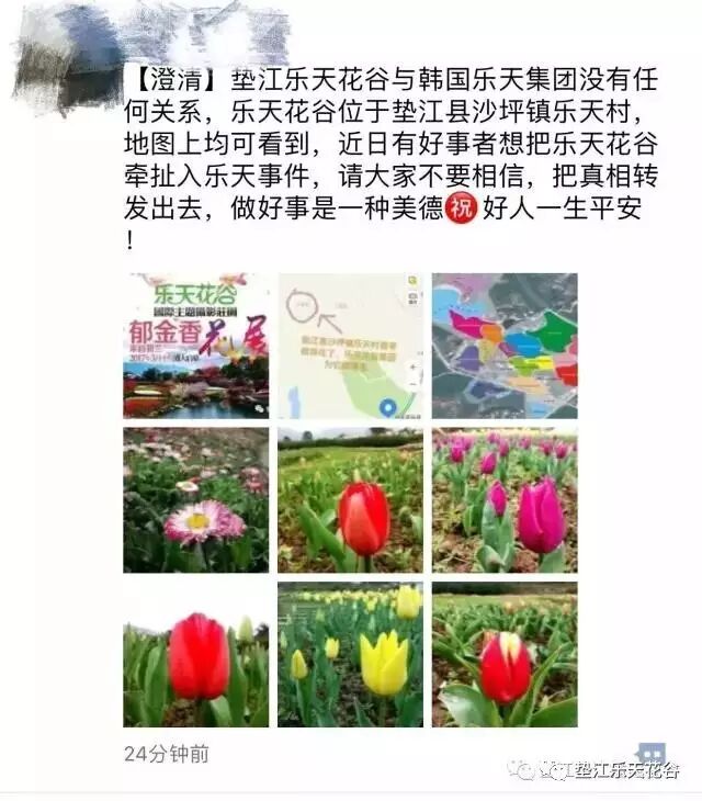 近日,有好事者想把我县乐天花谷风景区牵扯入韩国乐天集团事件,景区负责人表示垫江乐天花谷与韩国乐天集团没有任何关系,乐天花谷位于垫江县沙坪镇乐天村,因此得名乐天花谷,爱国的市民可以放心大胆地去游玩哦!