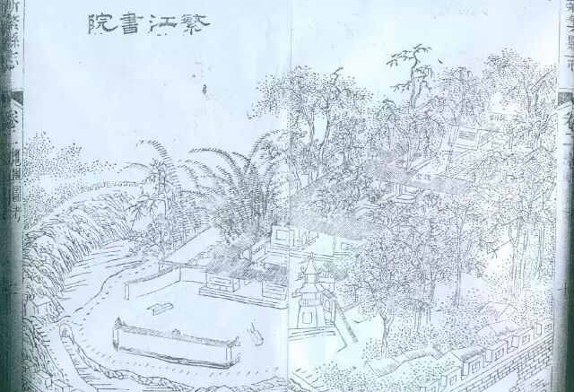清朝乾隆年间《新繁县志》中的繁江书院白描图