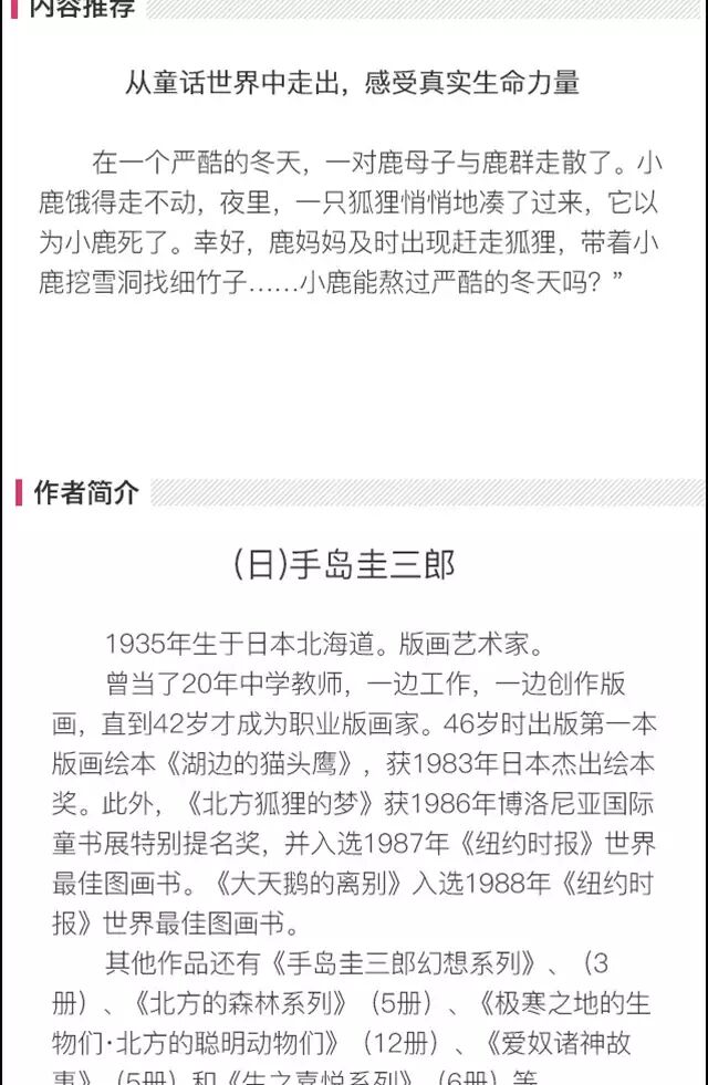 最后再跟大家分享一个关于感悟生命的绘本故事《跑向春天的梅花鹿》,提到“生命”,总是让人心生敬畏。希望通过这个应景春天的故事,能让每个人都懂得一个道理:大自然中的动物也好,植物也好,都在努力生活,他们美丽而坚强,亘古不变。