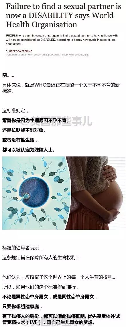“世界卫生组织WHO声称,长期没有性生活或找不到对象,可以被为是残疾。”