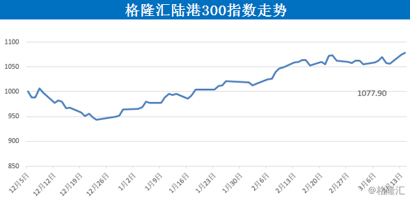 格隆汇陆港300指数收涨0.33%,收于1077.90点。其中161只上涨,25只收平,114只下跌。