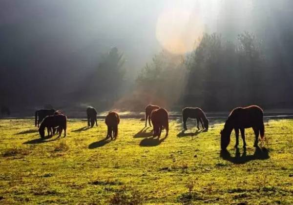 阳光下马儿悠闲地吃草,一派宁静的景象↓↓