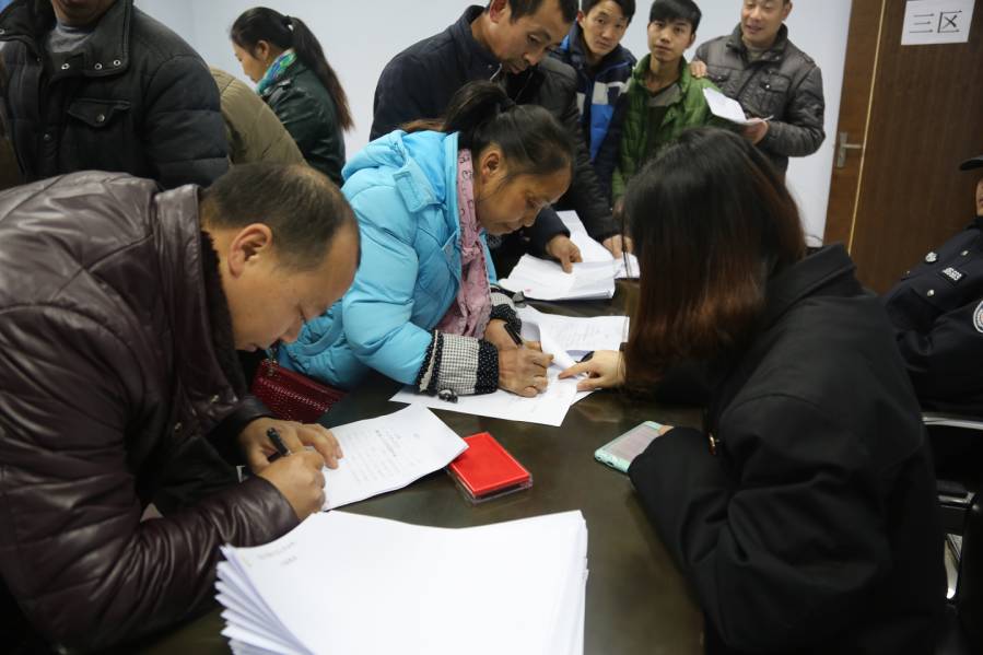 兑现现场,分成3个发放区,每个区由法官、书记员及5人组成,依次进行文书签字、核对领款。法官们一方面细心告知农民工领款所需的材料和手续,另一方面耐心地解答他们的疑问和咨询。
