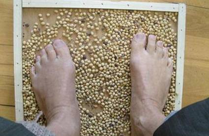 这个方法简单易行,比较适合初学者。在电视前面的地板上铺上黄豆,在看电视的同时,光脚在上面踩15分钟即可。因为黄豆的大小刚好,能够温和地刺激穴位,从而相对轻缓地促进新陈代谢,排毒和燃脂。但是要注意,当肚子太饿或者太饱的时候都不可用此法。做完后立刻喝杯水,排毒效果会更好。