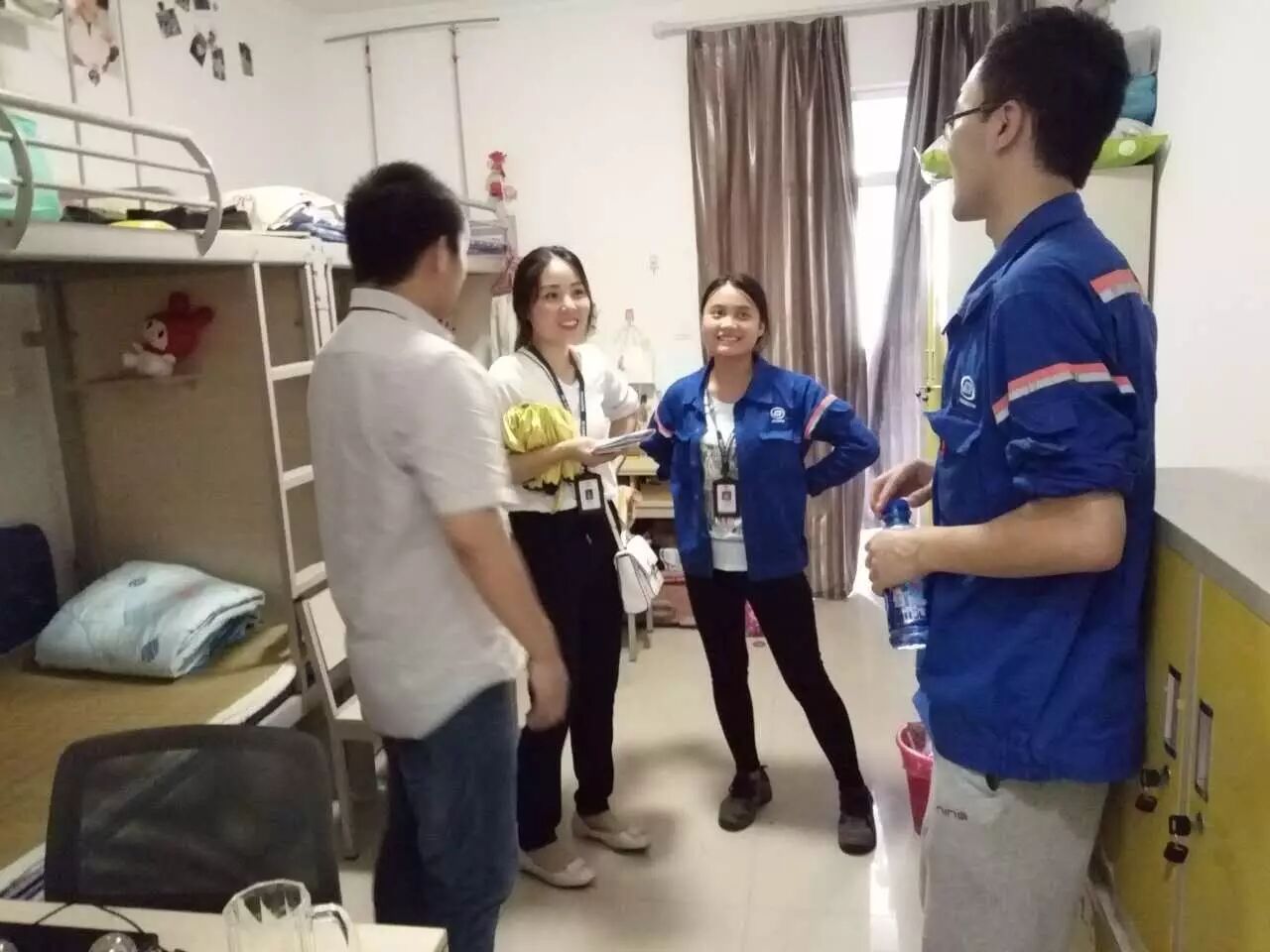 炎炎夏日,酷暑难当,重庆已开启火炉模式,居家用电多了起来,员工的情绪也多样化。为提高员工居家安全意识,安抚员工,提高员工归属感,确保全体同事身心投入到安全生产工作中。2016年7月9日星期五下午17:00,采购及供应链管理区域工会特别组织了本次“送关怀,合力守护安全;去酷暑,齐心带来清凉”,工会主席带着工会成员,冒着高温天气亲切慰问公租房的员工。
