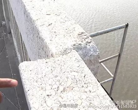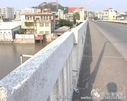 【福清海口元载大桥护栏外倾 过往行人要注意】@阳光灿烂WCF :福清海口镇林先生打来电话说,海口镇龙江上元载大桥出现了一些裂缝,桥面上一段水泥护栏向外倾斜约8.5公分,看起来十分危险。另外,桥面和公路的连接处也有裂缝,其中一处裂缝能塞进一个成年人的拳头。哪个部门来管管呢?
