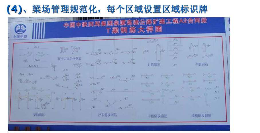 预制场选址与布置要经过多方案比选,功能区规划合理,现场悬挂预制场平面布置示意图,示意图中应说明预制梁场的建设规模、桥梁名称、台座数量、梁片的型式及数量 。
