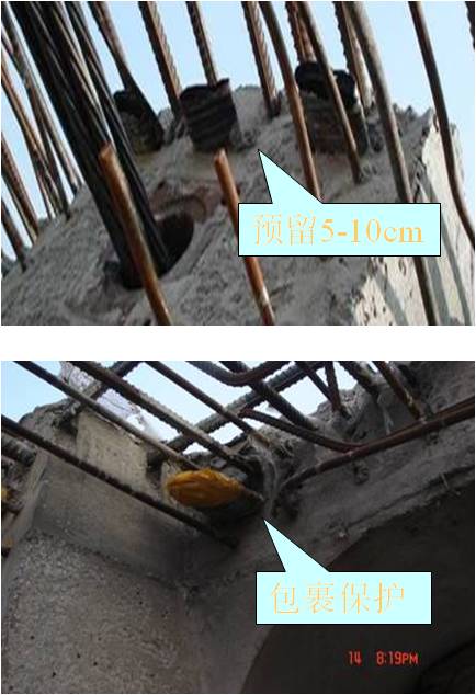 端部负弯矩预应力波纹管预留长度5~10cm,不得过长或太短,并包裹进行保护,以便吊装后进行连接 。