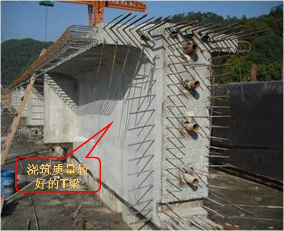 梁体砼表面平整、光滑、色泽一致、无明显模板接缝、无漏浆、无蜂窝、麻面等缺陷,水泡气泡小且少,外观线条顺畅,边梁翼板边缘线顺直、平整 。