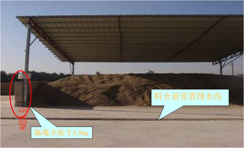 凡用于梁片预制的砂石料应按拌和站配料要求,不同粒径、不同品种分仓存放,不得混堆或交叉堆放,分料仓应采用“37”墙砌筑1.5m高,采用石灰或水泥砂浆抹面,仓内地面设向外不小于4%的地面坡度,分料墙下部预留孔洞,严禁积水 。