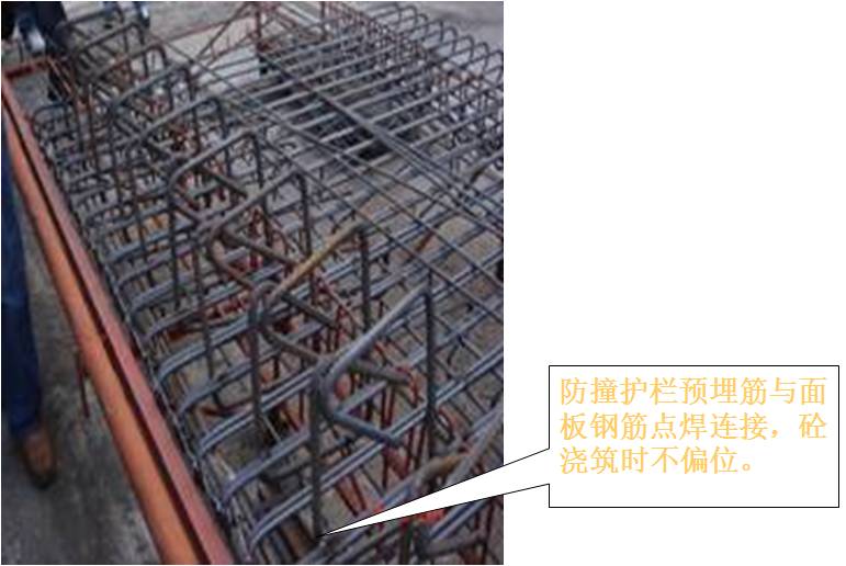 预制时应将伸缩缝预埋筋、泄水孔、防撞护栏预埋筋、吊梁孔(环)、钢束孔道等设计要求的预埋件全部按位置准确装好。