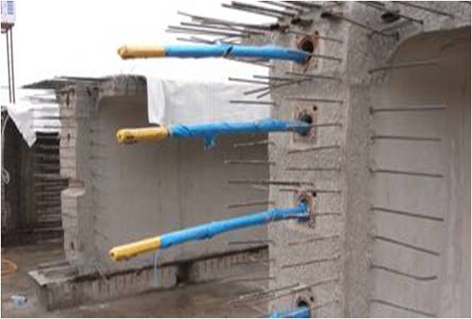 (8)预应力钢绞线在张拉控制力达到稳定后方可锚固,端头多余钢绞线切除必须使用用砂轮机,严禁用电弧焊切割。锚具应用混凝土保护,当需长期外露时,应采取防止锈蚀措施。