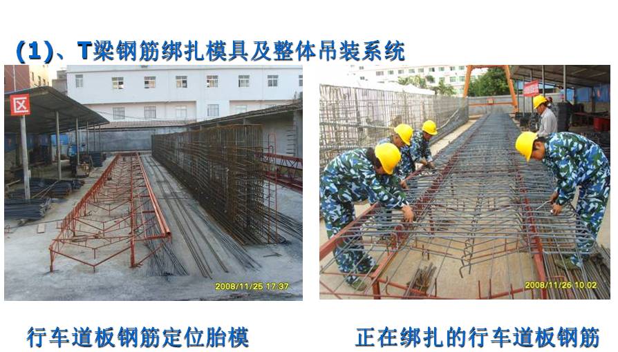 反拱度设置和分配应满足设计和线形要求;台座的侧边应顺直,要有防止漏浆的有效措施 。台座要满足不同长度梁片的制作,台座两侧用红油漆标明钢筋间距 。预制台座间距应大于2倍顶板模板宽度,以便吊装模板。预制台座数量应根据梁板数量和工期要求来确定,并要有一定的富余度。