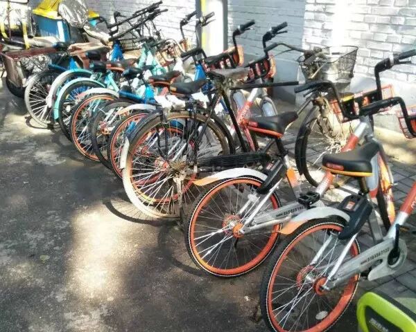 ↑ 为居民把共享单车摆放整齐