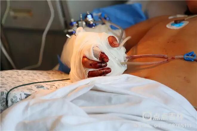在吉林市人民医院内,受伤的小李躺在病床上,胳膊上打着绷带。小李已经脱离了生命危险,小李的母亲常女士向记者介绍称:“右手粉碎性骨折,手指断了,而且头部也受伤了,迷糊恶心,现在还在观察,后续情况还不好说呢。”