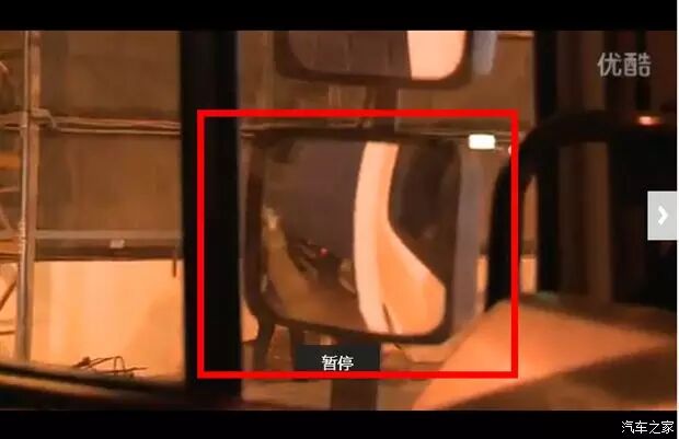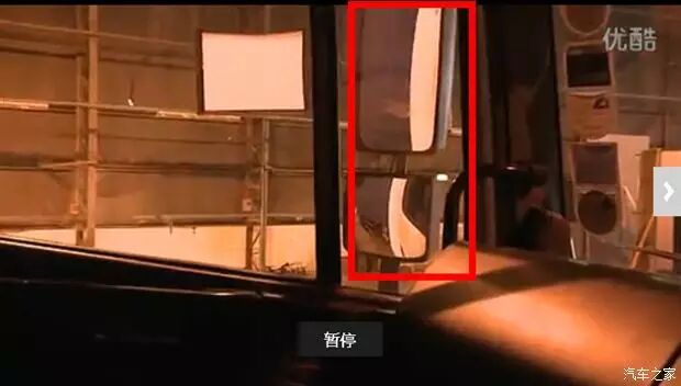 第二个视频中,一辆右舵卡车模仿车辆向左转弯的情景,拍摄者坐在驾驶位,拍摄了左侧反光镜内的情景,这辆车还配备了普通反光镜和大视野反光镜。