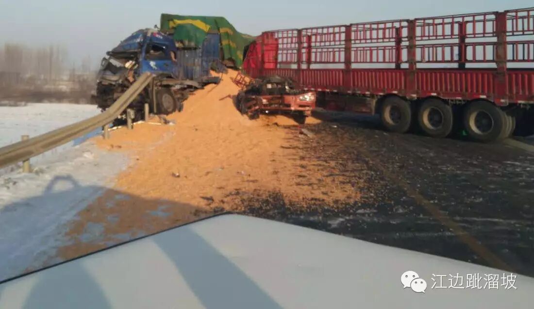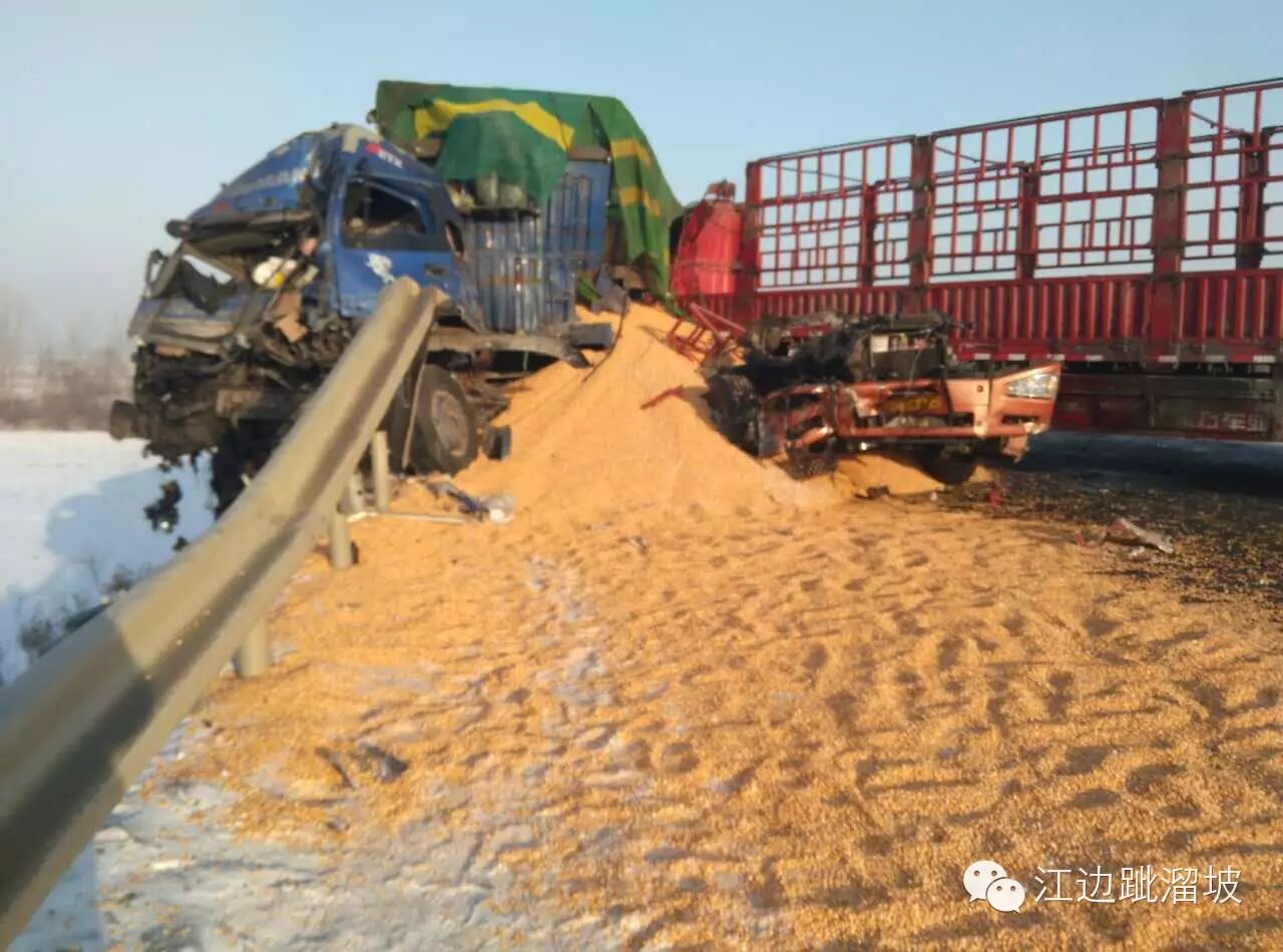 2016年1月25日上午,吉林市龙潭区大口钦镇两辆大车对向相撞。
