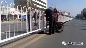 日前,我市道路中间护栏首现南环路西段。行人和车辆司机对这一安全举措纷纷“点赞”。图为施工人员在加固道路中间护栏底座。(宋杰 )