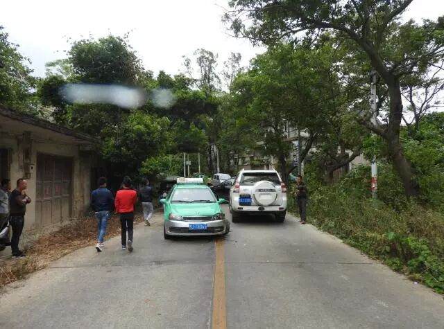 经现场勘查及调查后,事故是由于钟某初次驾车行经该路段,且当时天下大雨、路面视线不好,钟某所驾驶的本田CRV越野车与对向驶来的出租车会车时占道行驶所造成。万幸的是事故未造成人员伤亡。值勤民警现场快速取证完毕后及时通知救援车辆对现场事故车辆进行拖移,快速恢复现场交通秩序和引导当事司机到快处快赔点进行事故车辆定损赔偿事宜。