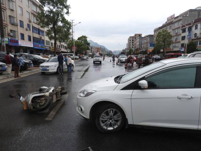 15日14时许,在钟山北环东路红绿灯路段一摩托车驾驶员韦某由于雨天路面湿滑,驾驶操作不当导致车辆发生侧翻碰撞到前方对向行驶的小车轿车,造成摩托车上人员受伤的交通事故。