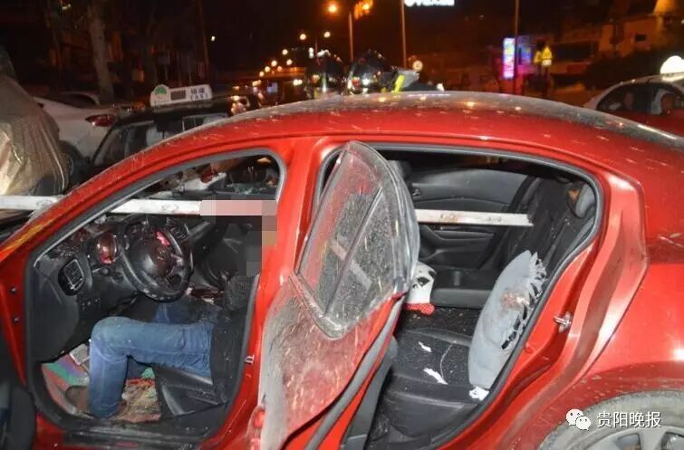 3月31日凌晨,贵阳市解放路空招路段发生一起交通事故,一辆轿车在行驶过程中撞上护栏,一根栏杆穿过轿车车身,还穿过了司机头部,致其当场死亡。