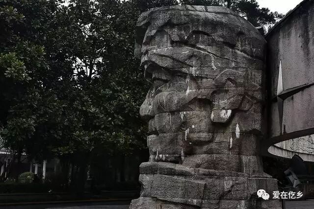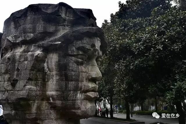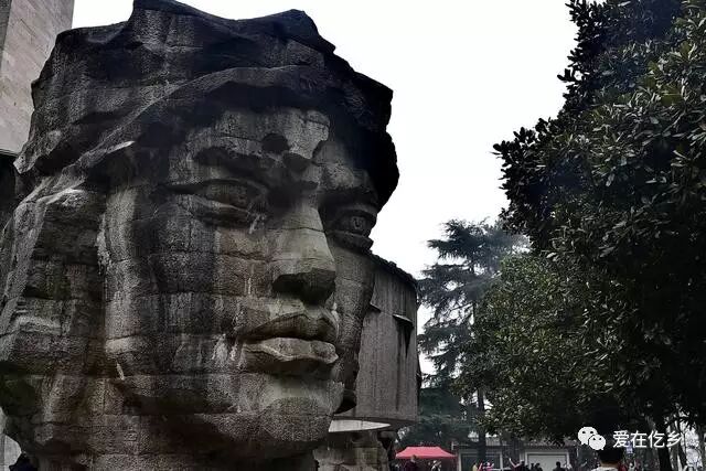 纪念碑的四个角落,大型的红军头像石雕塑。