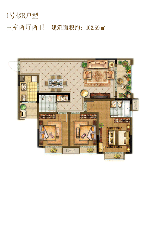 建筑面积约:102.59㎡