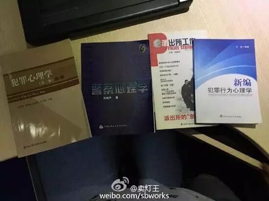 【一个嫌疑人家里搜出来的书~】同事从抓到的一个嫌疑人家里搜出来的书!犯罪心理学,警察心理学,派出所工作……嫌疑人都这么拼,我们有什么资格不努力?(@卖灯王)