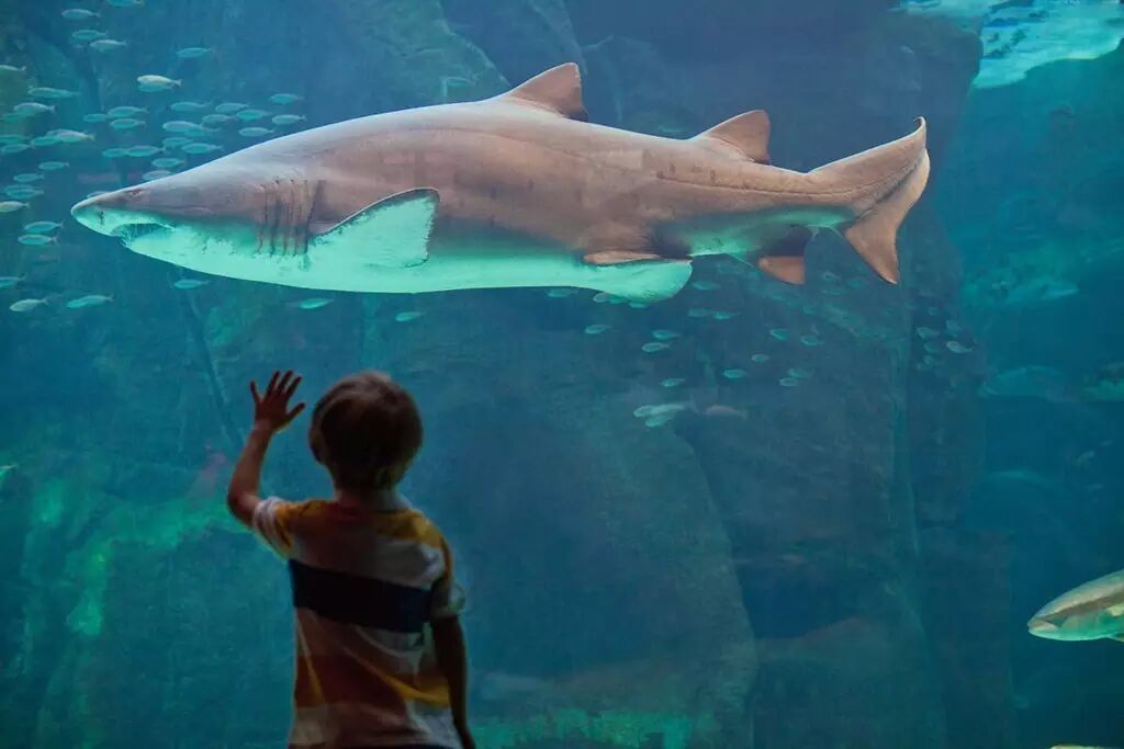 置身于鲨鱼馆的弧形视窗下,沙虎鲨、铅灰真鲨、豹纹鲨等数种鲨鱼从头顶穿梭而过,惊险刺激的“群鲨探险”,带你深入了解鲨鱼习性,近距离一睹海洋霸主风采!