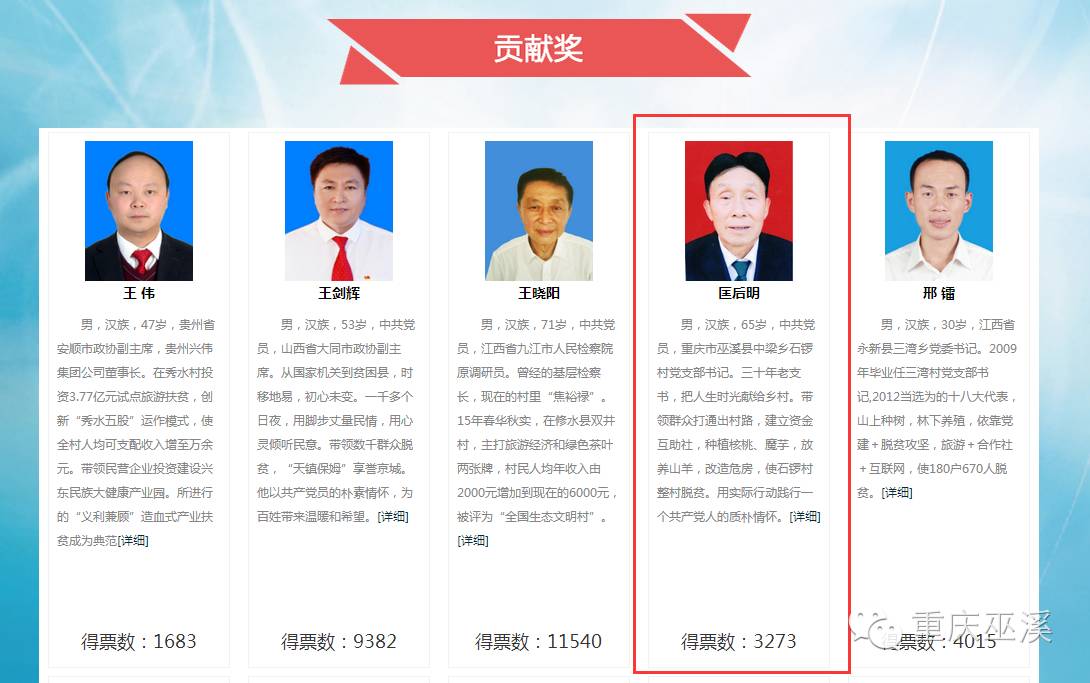 2015年底,全村年人均纯收入7602元,69户建档立卡贫困户247人全部脱贫。30年里,他历经10次村级组织换届,每次都是满票当选,先后60余次荣获市县级优秀党员、先进个人、劳动模范等荣誉称号。