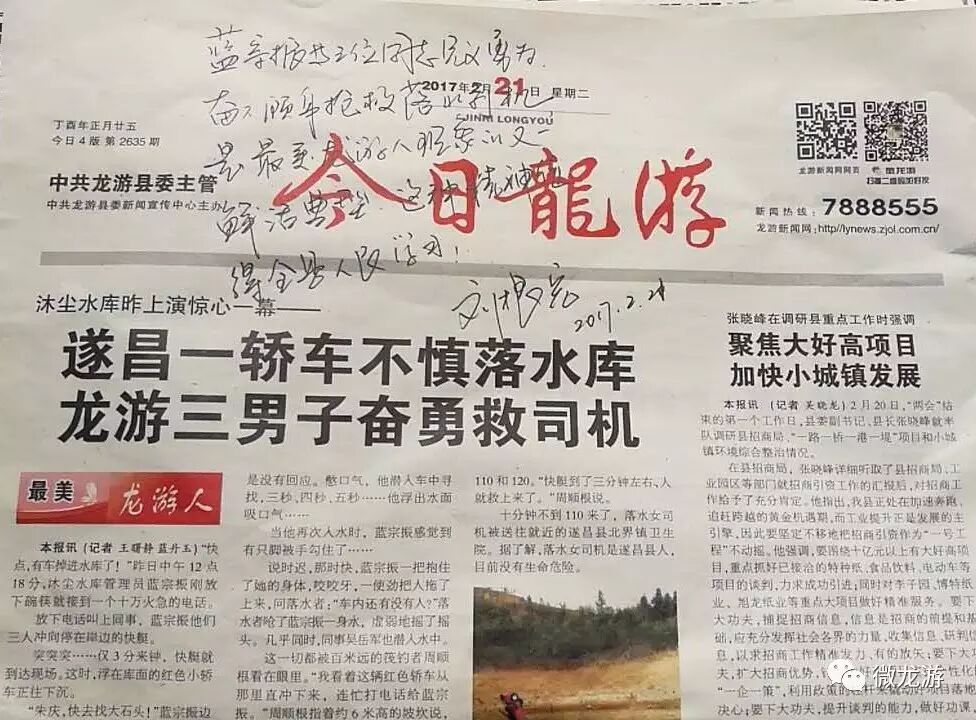 小编了解到,这并不是他们第一次救人。2015年秋,有人驾车撞坏公路护栏翻至水库岸上,他们闻讯后前往奋力施救。