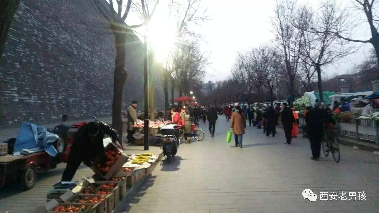 如此这般忙碌后,一切又恢复平静,不太宽阔的路面上干净如初。不知内情的人,中午十点以后走在巍巍的古城墙根下,根本看不出早上这里曾是人流如蚁、热闹非凡的早市。
