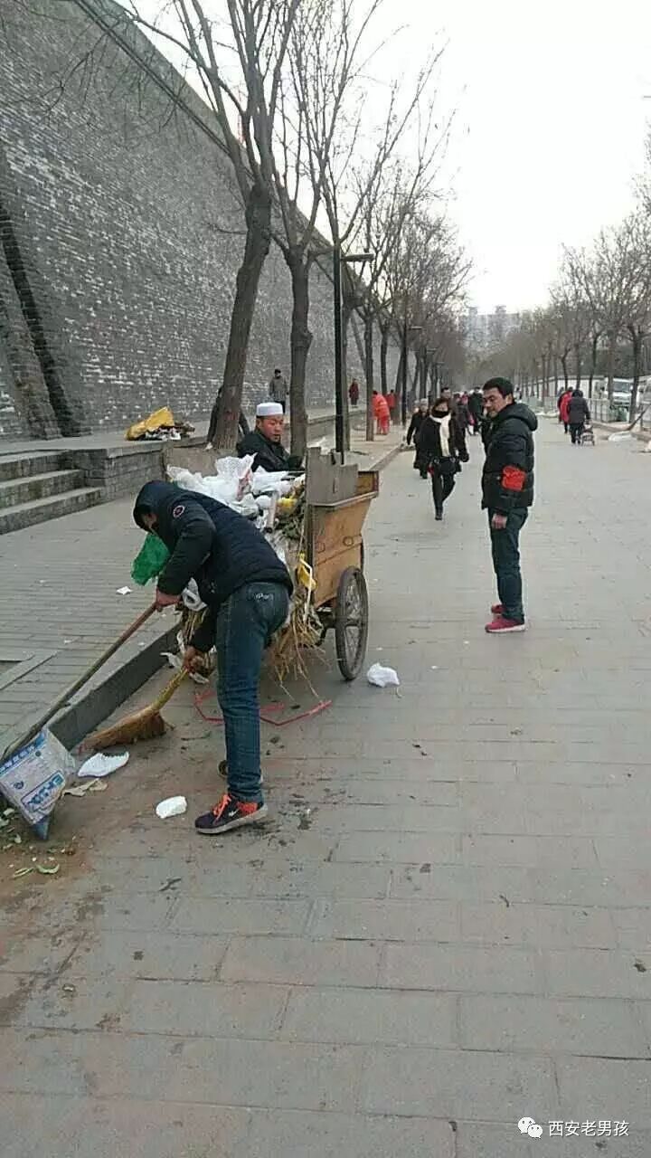我来到他们旁边,问一个带着口罩,上衣印有“碑林保洁”字样的老年人:“管理人员那里去了?”“都在这里。”老人头也不抬的回答。
