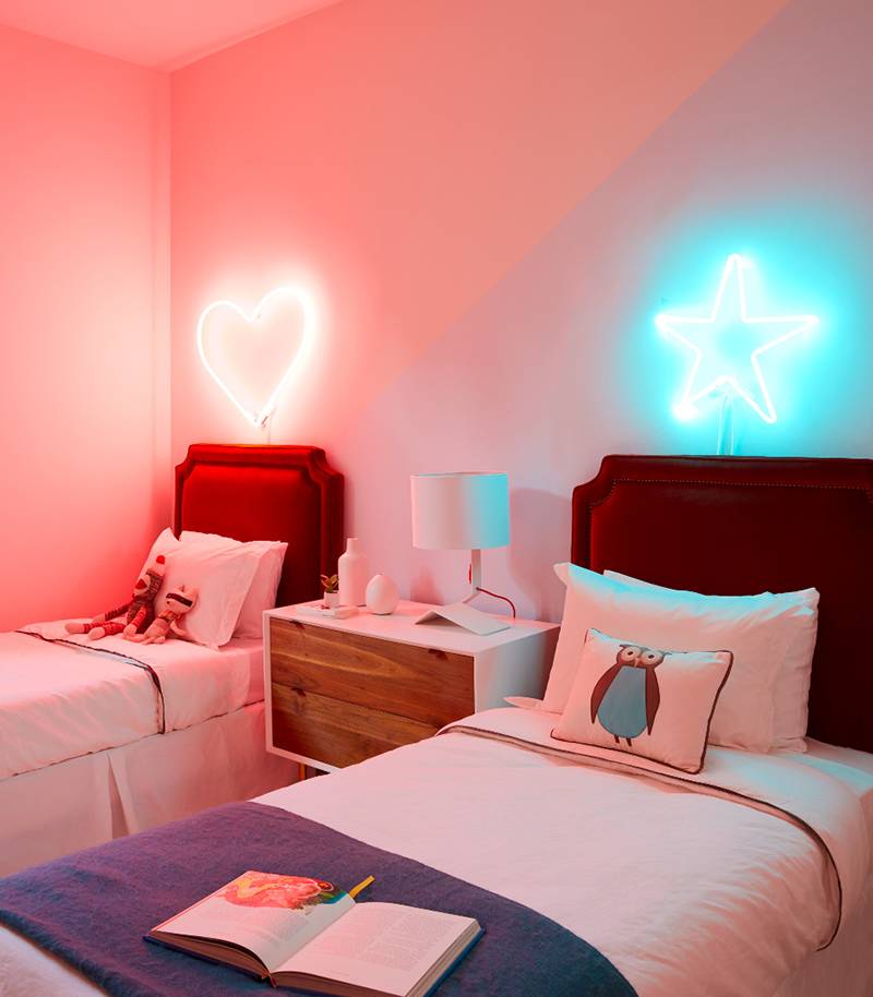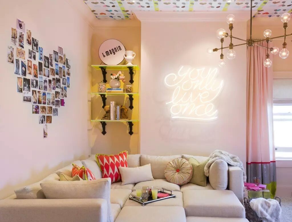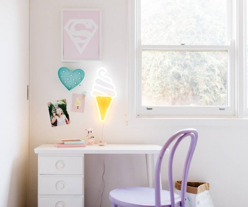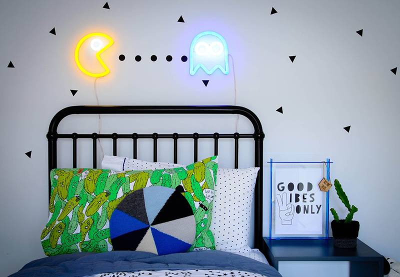 想在家中营造俏皮感,选择图案霓虹灯就最好不过。可能是一只可爱的喵星人,又或者是闪亮亮的冰淇淋,孩子床头的日月星光,天边轻巧的云朵……霓虹灯就这样让生机充满空间。